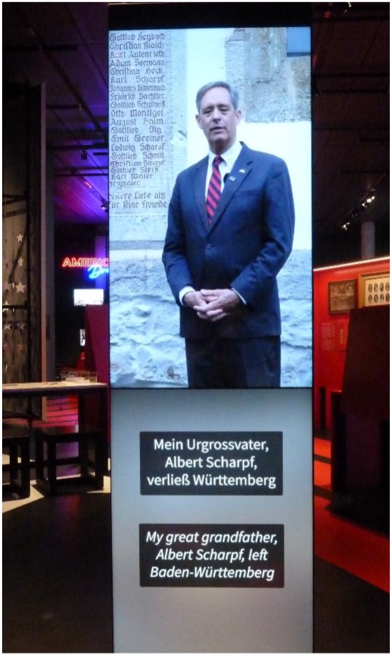 Bis zum 28. Juli dieses Jahres konnte man im Stuttgarter „Haus der Geschichte“ die Ausstellung „American Dreams. Ein neues Leben in den USA“ besuchen. Sie gewährte Einblicke in die Biografien von Menschen aus dem deutschen Südwesten, die in der „Neuen Welt“ jenseits des Atlantiks ihre Zukunft sahen. In einer Installation erzählte Norman Thatcher Scharpf, von August 2021 bis Juni 2024 US-Generalkonsul in Frankfurt und im November 2021 sowie im September 2023 zweimal auf Besuch in Baltmannsweiler, von seinen schwäbisch-amerikanischen Wurzeln. Diese gehen auf seinen Urgroßvater Karl Albert Scharpf zurück, der als 17-Jähriger im Jahr 1888 ganz allein von Baltmannsweiler aus das Abenteuer Nordamerika wagte.