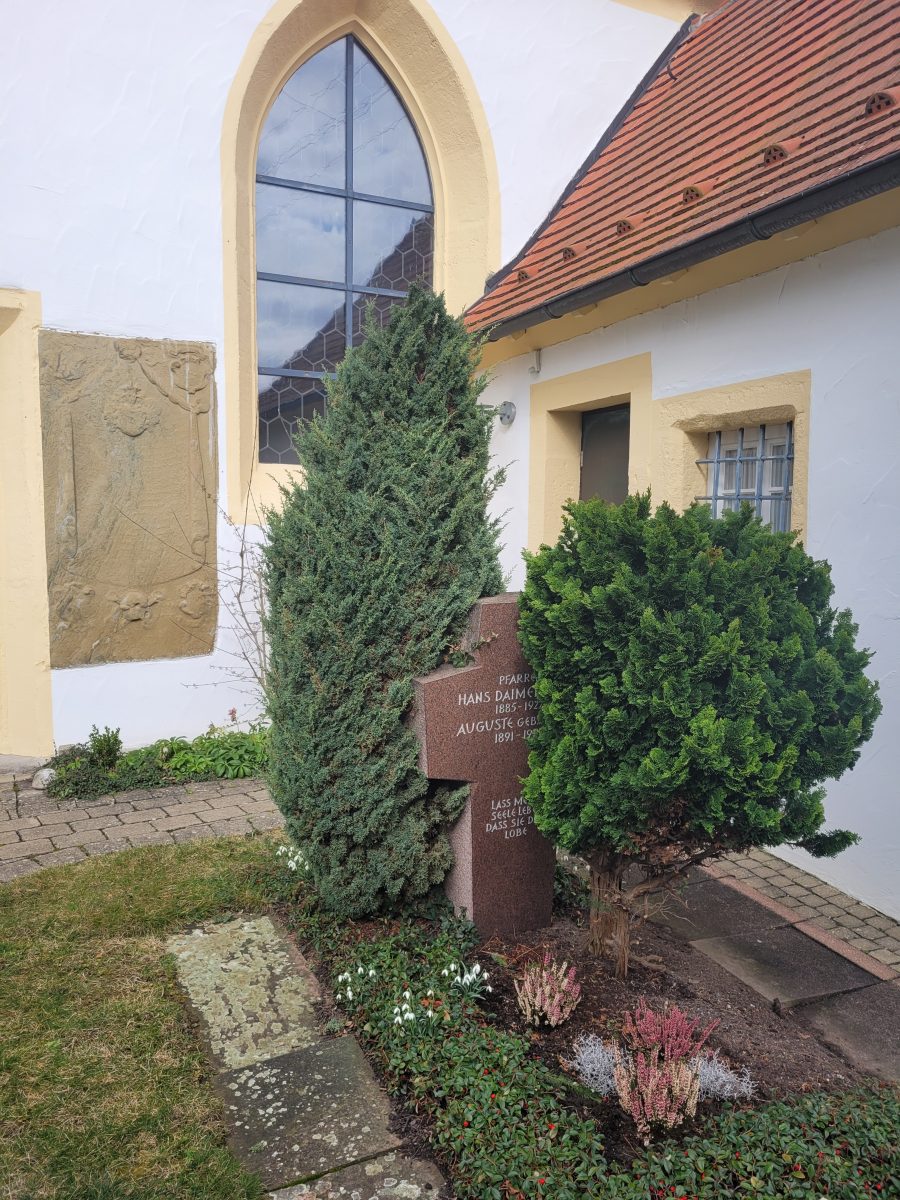 Ein gepflegtes, aber wohl wenig beachtetes Grab direkt bei der Hohengehrener Cyriakuskirche, in dem vor fast 100 Jahren der damalige Pfarrer Johannes Daimelhuber bestattet wurde.