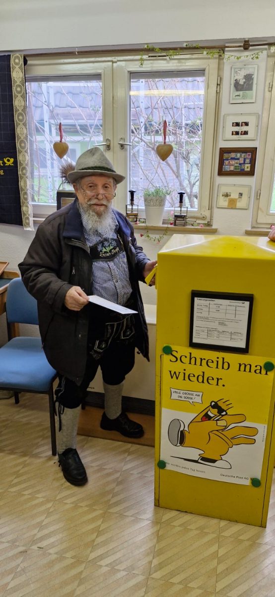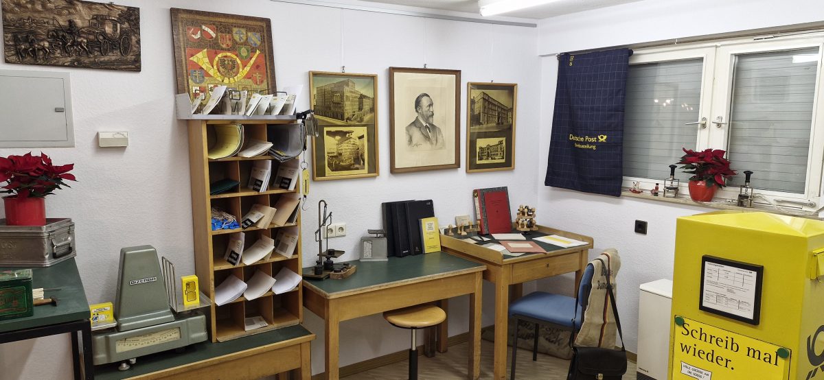 Für zwei Tage wehte vor dem Gebäude Lautergasse 26 ausnahmsweise statt der Fahne eines weltbekannten bayerischen Fußballvereins die der Deutschen Bundespost. Anlass war eine Ausstellung des hiesigen Heimat- und Geschichtsvereins in der ehemaligen Hohengehrener Poststelle. Zu besichtigen waren neben einer Fülle von Ansichtskarten mit Baltmannsweiler Motiven auch dienstliche Möbelstücke und Utensilien unterschiedlicher Art aus vergangener Zeit: beispielsweise eine Dienstuniform, Poststempel oder ein echter Briefkasten. Die Besucher konnten unter anderem nostalgische Motivkarten, die limitierte Jubiläumsbriefmarke oder einen Kalender für 2025 mit historischen Fotos erwerben. In der Scheune sorgten Vereinsmitglieder für das leibliche Wohl, sie verkauften erfolgreich Kaffee und Kuchen, Glühwein und weihnachtliches Gebäck. Auch Gestecke und Weihnachtsdekorationen wurden angeboten.