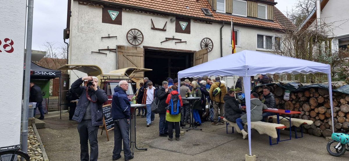 Nach der sehr guten Besucherresonanz auf die Ansichtskartenausstellung am 14. und 15. Dezember 2024 im Gebäude Lautergasse 26 stellten sich die Mitglieder des Heimat- und Geschichtsvereins die berechtigte Frage: Kann der Erfolg wiederholt oder gar gesteigert werden? Die Frage kann mit einem klaren Ja beantwortet werden. Diesmal wurden in der ehemaligen Poststelle neben den bekannten dienstlichen Möbelstücken und Utensilien unterschiedlicher Art aus vergangener postalischer Zeit abermals viele Ansichtskarten präsentiert, nun aber mit Hohengehrener Motiven. Sie stammen zu einem großen Teil aus dem Fundus des passionierten Esslinger Sammlers Franz Kirsch. Erneut konnten auch nachgedruckte nostalgische Karten und die limitierte Jubiläumsbriefmarke (mit neuen Wertangaben) käuflich erworben werden. In und bei der Scheune sorgten Vereinsmitglieder für das leibliche Wohl, sie verkauften erfolgreich Kuchen sowie am Samstag Leberkäswecken und am Sonntag gegrillte Wurst. An einer umgebauten Piaggio Ape gab es Kaffee und Wein, und eine Floristin aus dem Ort bot Arrangements aus Frühlingsblumen an.