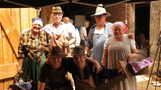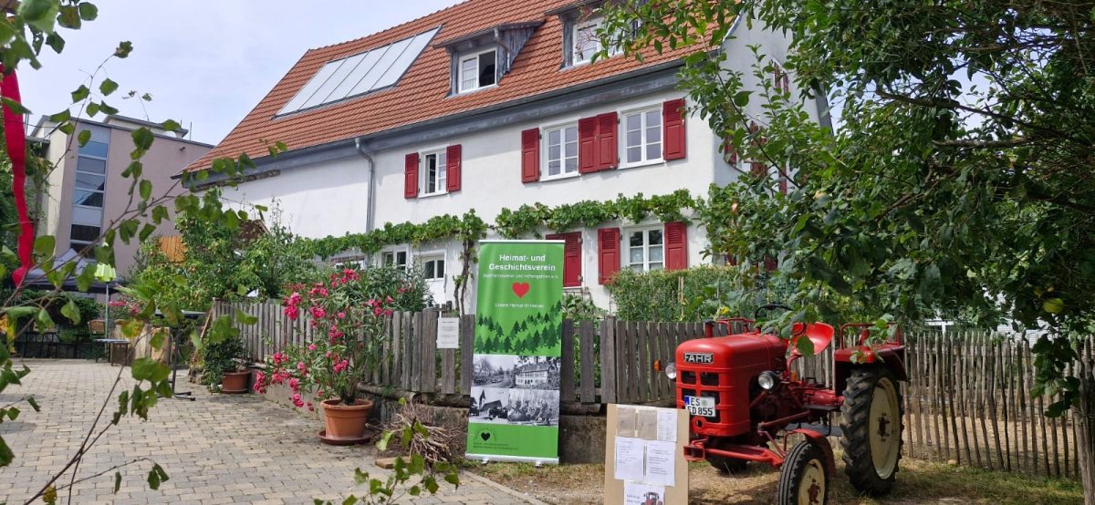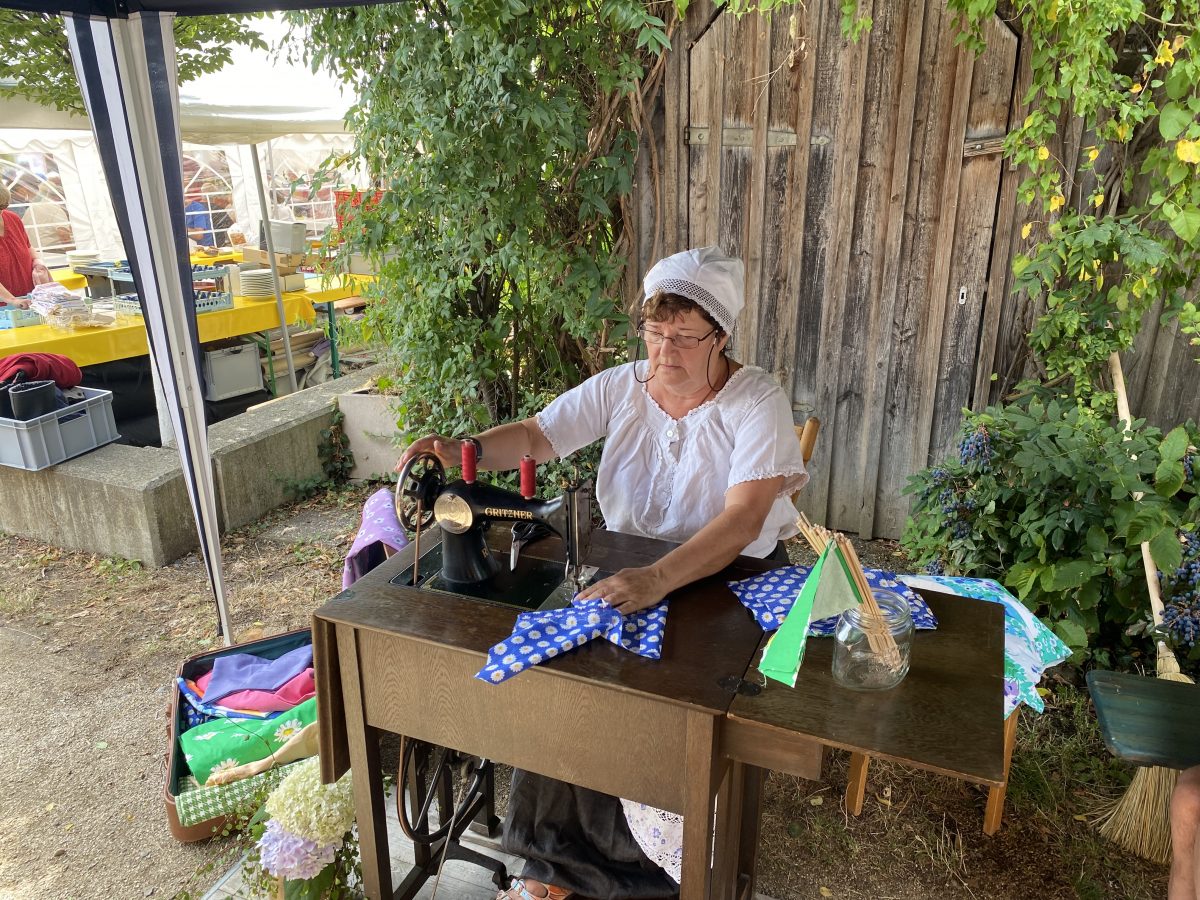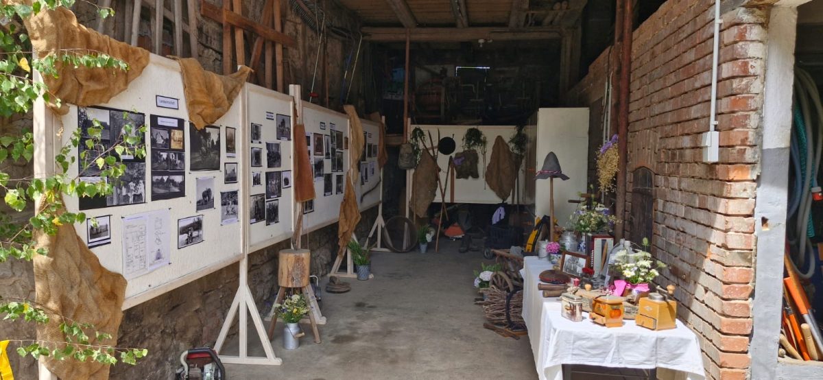 Nach reiflicher Planung in den zurückliegenden Wochen war es endlich soweit! Am Freitagnachmittag und Samstagvormittag begannen etliche Mitglieder vor und in dem eindrucksvollen Bauernhaus am Marktplatz mit dem Aufbau für das zweitägige Dorffest. In der Scheune sollten Arbeitsgeräte vielfältiger Art und etliche Fotos das örtliche Arbeitsleben in der Land- und Forstwirtschaft aus längst vergangener Zeit zeigen. Für die Beantwortung von Besucherfragen standen immer kompetente Vereinsmitglieder bereit. Weitere Attraktionen waren u. a. ein bestens erhaltener Traktor der Marke Fahr oder eine voll funktionstüchtige historische nennende Nähmaschine. Auch für das leibliche Wohl war bestens an einem Pavillon gesorgt, zudem konnten Gäste lokale landwirtschaftliche Produkte erwerben. Biertische und -bänke luden zum Verweilen und Verzehr der angebotenen Speisen und Getränke ein.